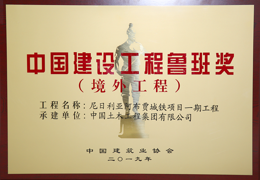 阿布賈城鐵獲得2018-2019年度中國建設(shè)工程魯班獎(境外工程)、
