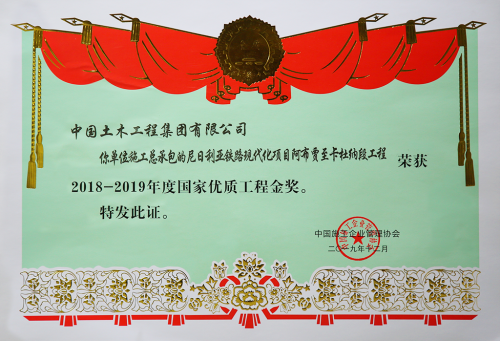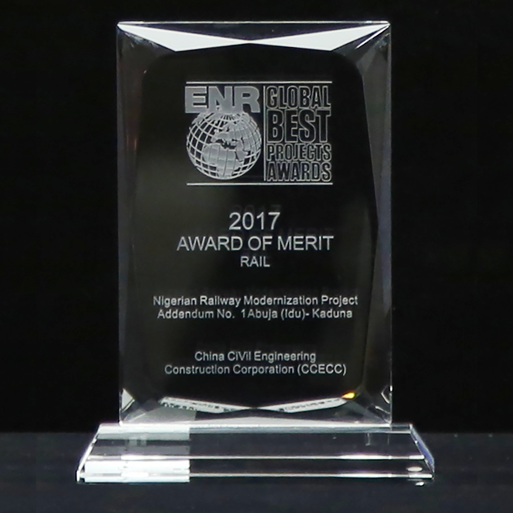 尼日利亞鐵路現代化項目阿卡段獲得2016-2017年度中國建設工程魯班獎(境外工程)、2017年ENR全球優秀工程獎(軌道交通類)、2018-2019年度國家優質工程金獎